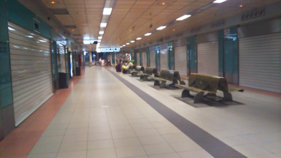 マドリードのバスターミナルで夜食を食べ、バルセロナに向かいます。